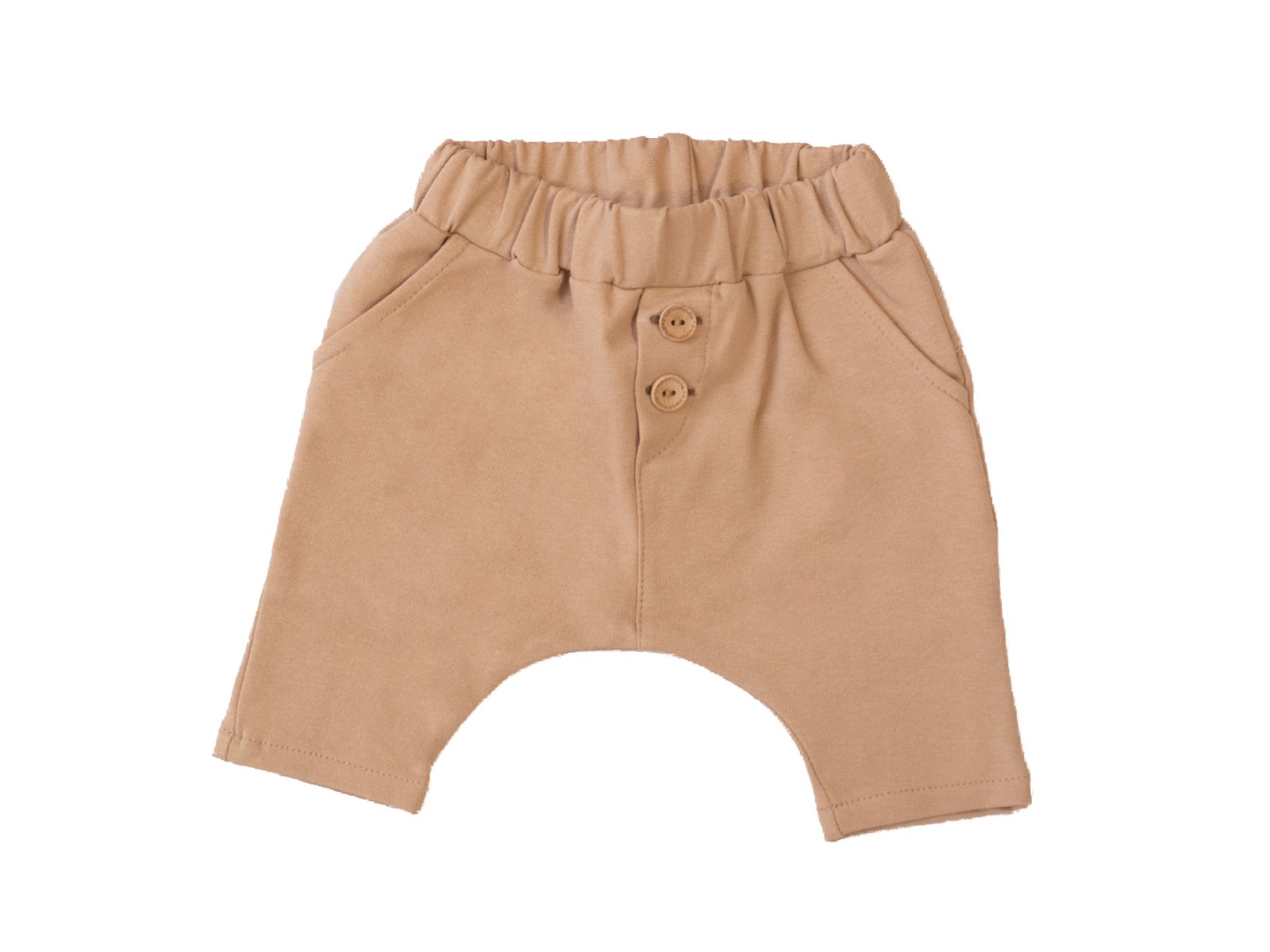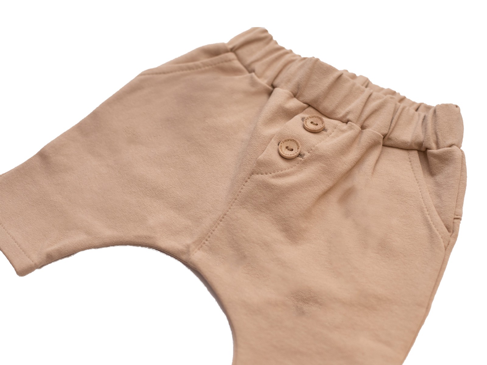 Spodnie: ozdobne kieszenie z przodu i z tyłu .Na przodzie imitacja rozporka na którym naszyte sa dwa eco guziczki.