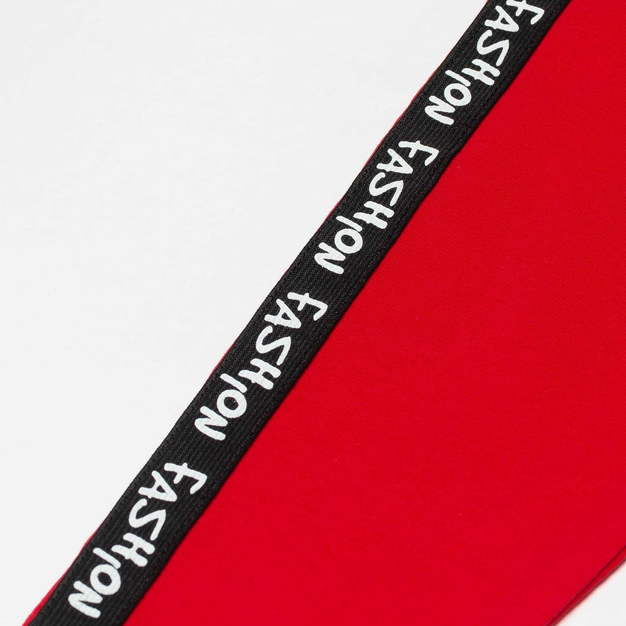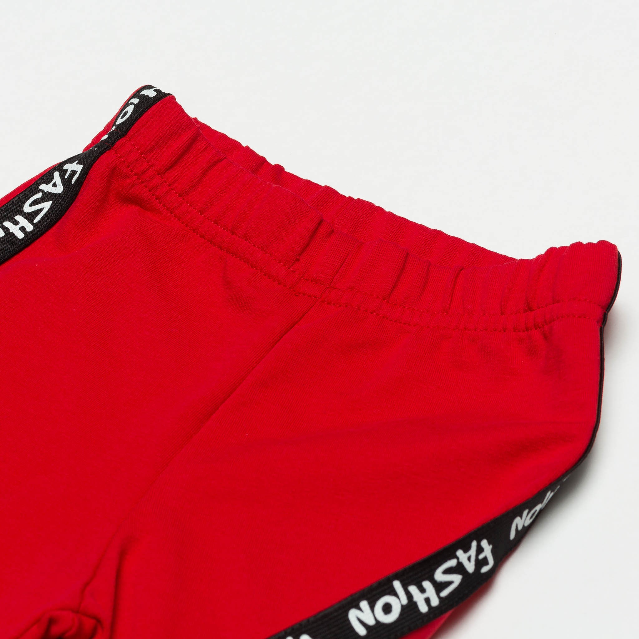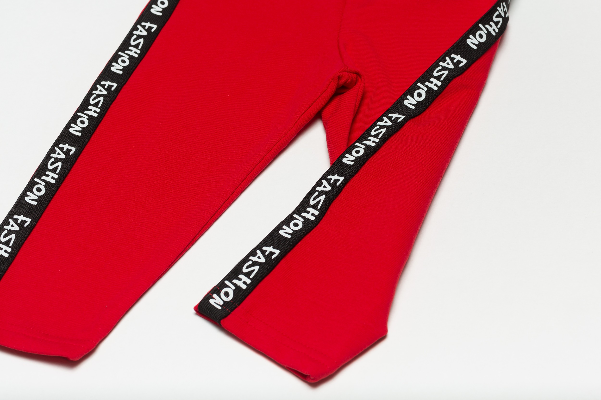 Leginsy wykonane z dzianiny dresowej 95% bawełny i 5 % elastan .Na bokoch ozdobna taśma.