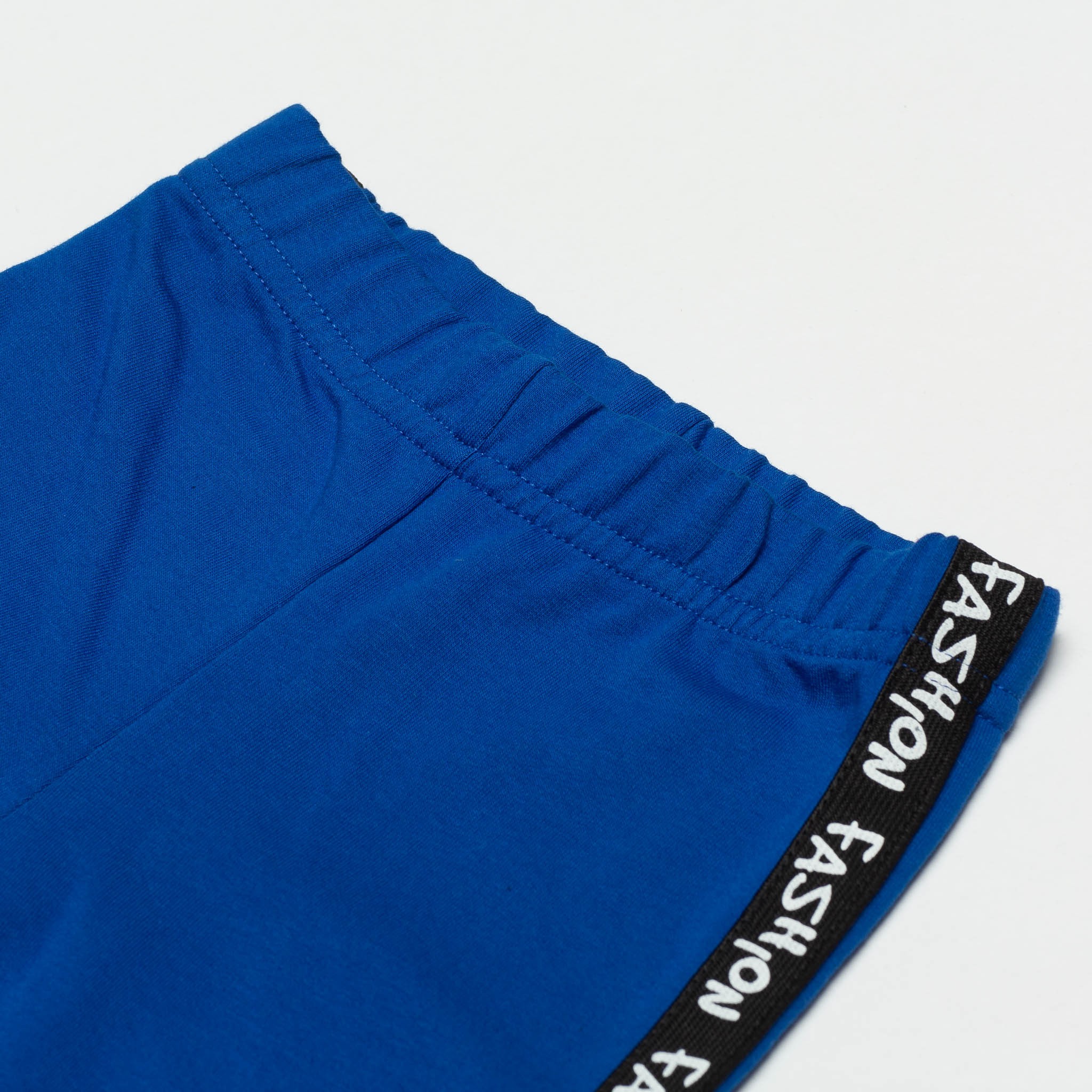 Leginsy wykonane z dzianiny dresowej w składzie 95% bawełna 5 % elastan .Na bokach naszyta ozdobna taśma.