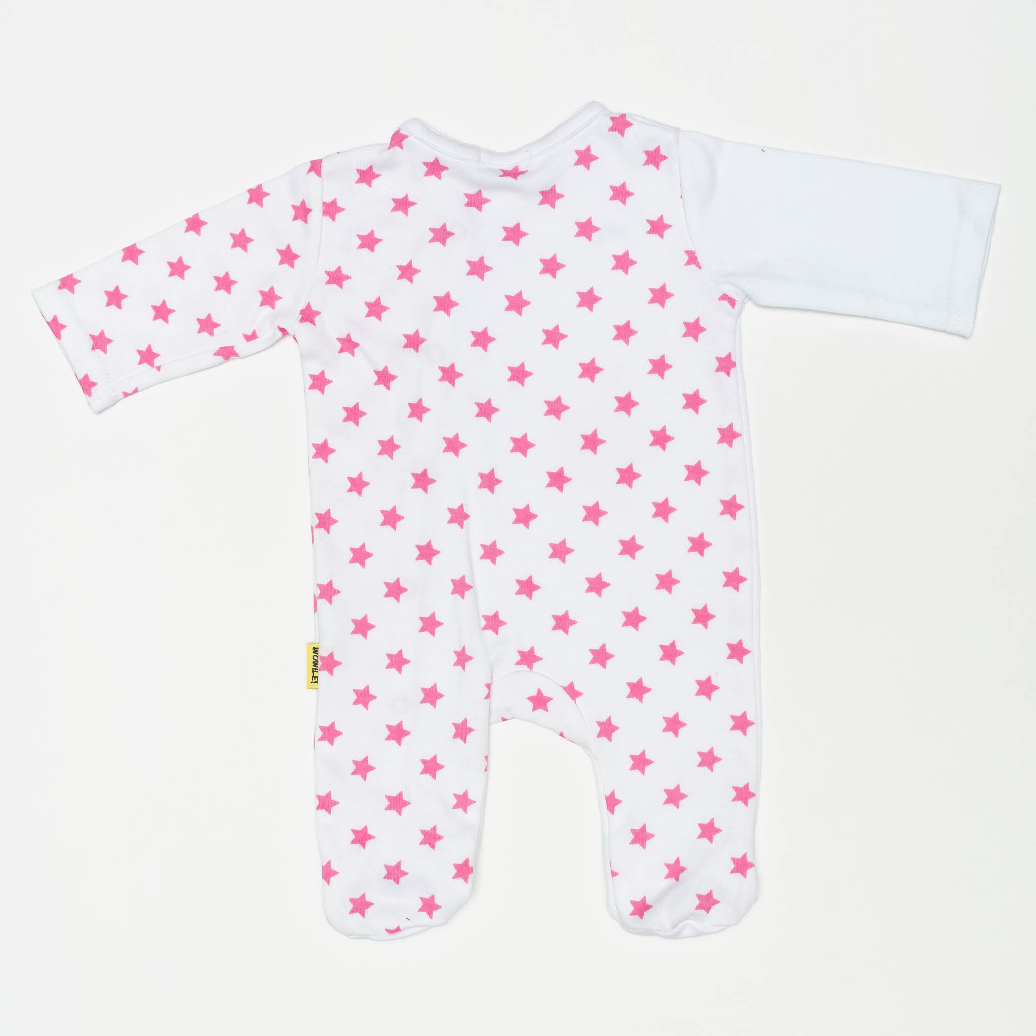 Pajac wykonany z polskiej bawełny 100 %.Zapinany na bezniklowe napki .Ozdobna gwiazdka naszywana na przodzie pajacyka.