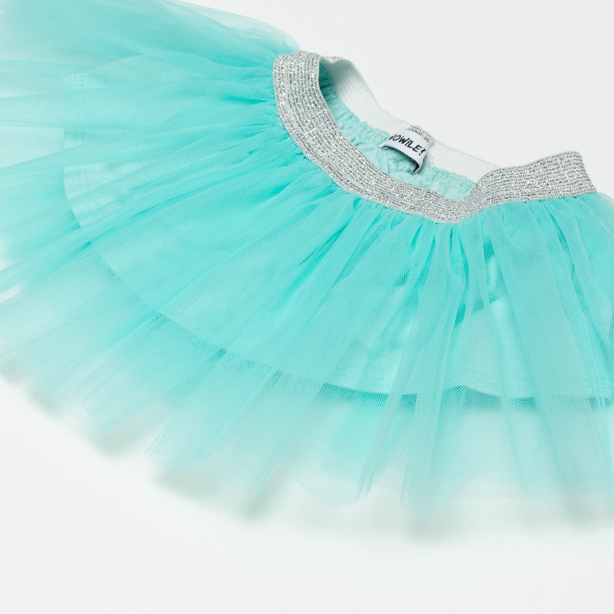 Uszyta z podwójnej warstwy tiulu .W pasie ozdobna guma w kolorze srebrnym.Podszewka z delikatnej bawełny.
